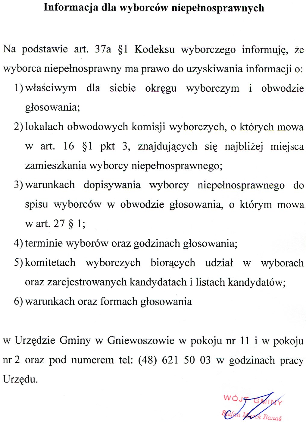 | Informacja dla wyborcy Gminy Gniewoszów |