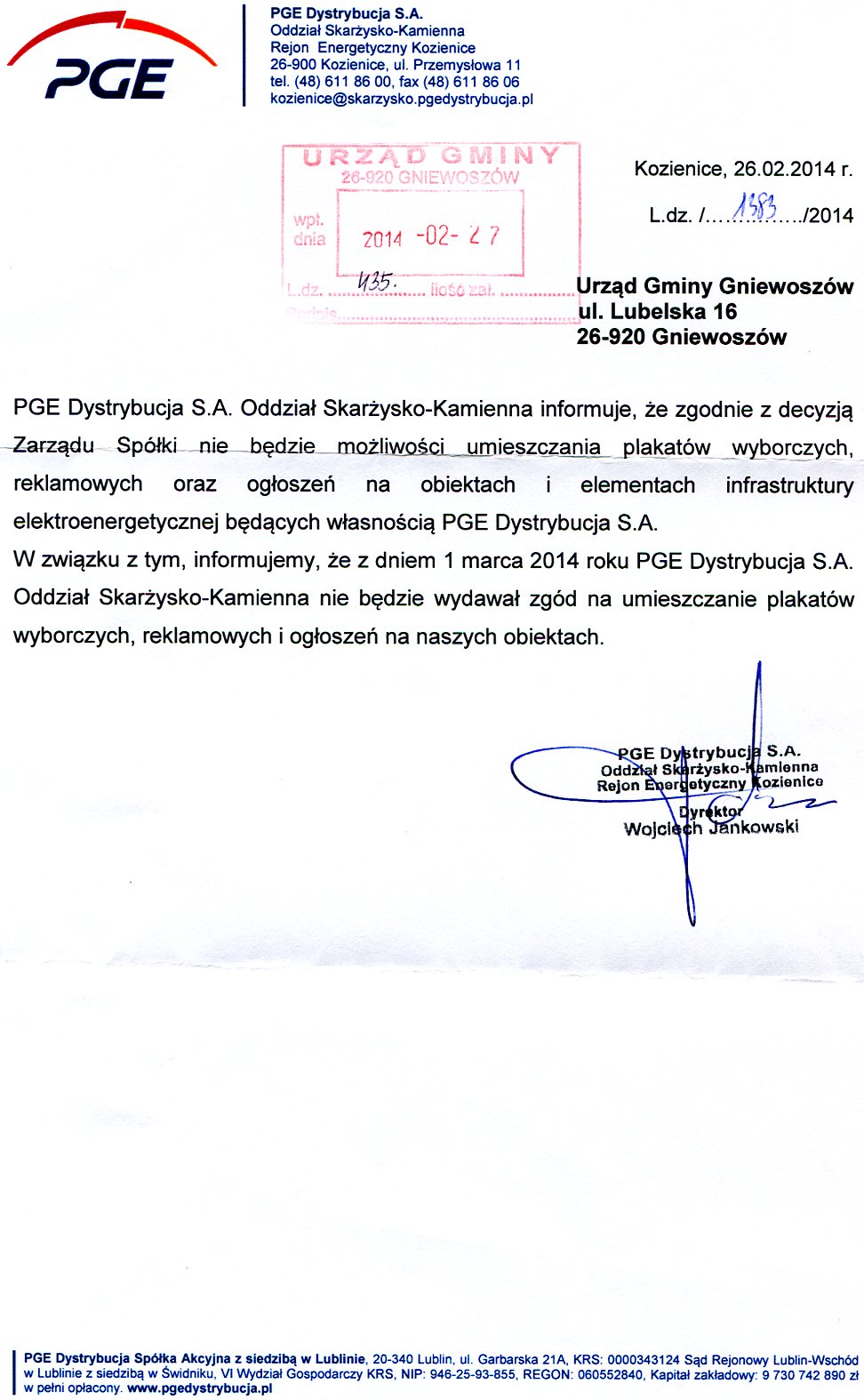 - udostępnienia do wglądu spisu wyborców Gminy Gniewoszów
